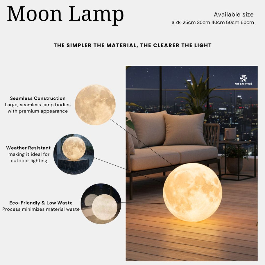 Ideal for living spaces, bedrooms, hospitality environments, and feature lighting installations, the Moon Sphere Lamp enhances interiors with a soft, modern, and atmospheric glow. Suitable for both standalone statement pieces and grouped lighting compositions.